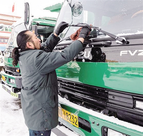 其美多吉在出班前檢查車輛。經(jīng)濟(jì)日報-中國經(jīng)濟(jì)網(wǎng)記者 張 雪攝