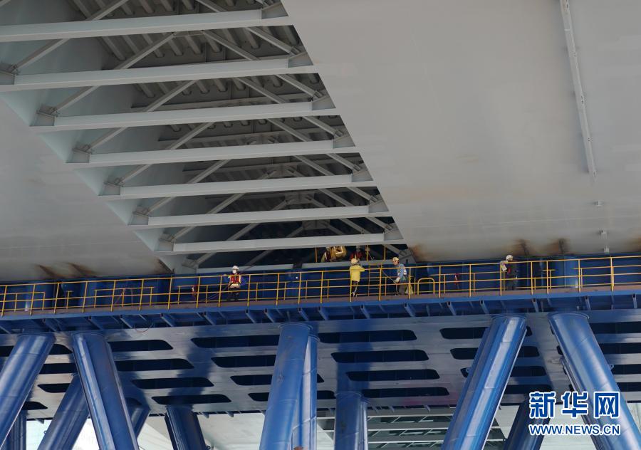 “冒出來”的并不是一座完整的大橋,而是一段跨徑長達(dá)200米的雙拱鋼橋,在海面中央兀然矗立?!斑@是我們大橋工程最核心的主橋部分,技術(shù)難度最大,對整個(gè)項(xiàng)目有里程碑的意義。”承建單位中國路橋工程有限公司董事、項(xiàng)目總指揮闞軍說。