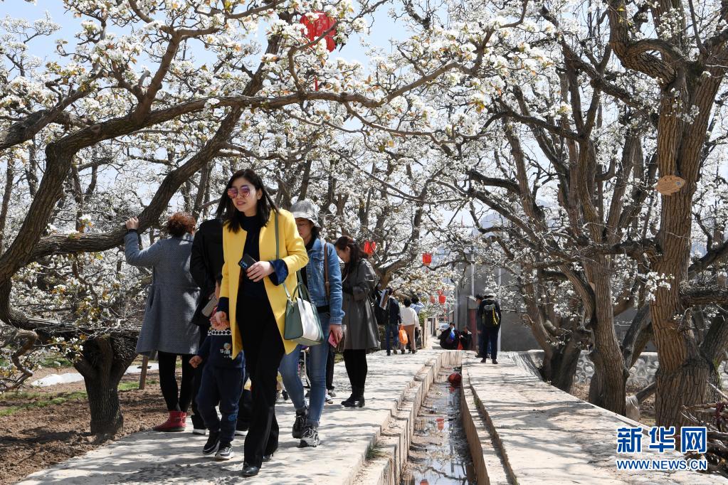 近日,位于甘肅省蘭州市皋蘭縣什川鎮(zhèn)的古梨園梨花盛開(kāi),吸引眾多游客前來(lái)賞花踏青。