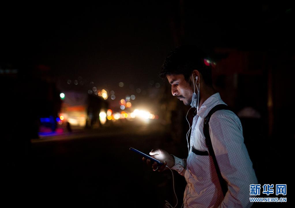 4月28日晚,一名男子在尼泊爾首都加德滿都的路邊等車,準(zhǔn)備在封禁措施實(shí)施前離開加德滿都返回家鄉(xiāng)。