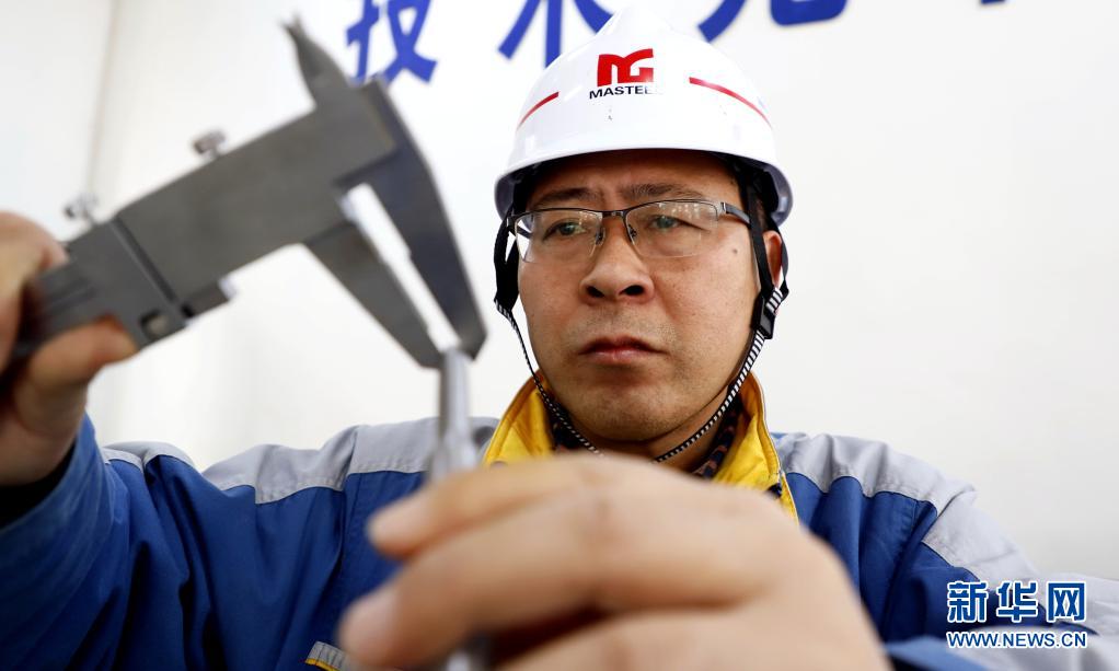 吳保橋在測量拉伸后試樣的面縮率(資料照片)。