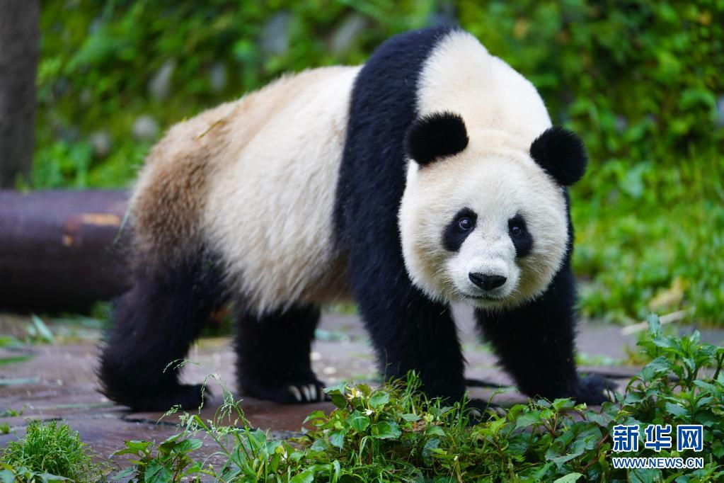 這是5月15日在中國(guó)大熊貓保護(hù)研究中心雅安碧峰峽基地拍攝的大熊貓。