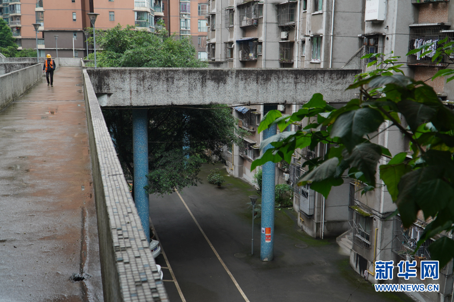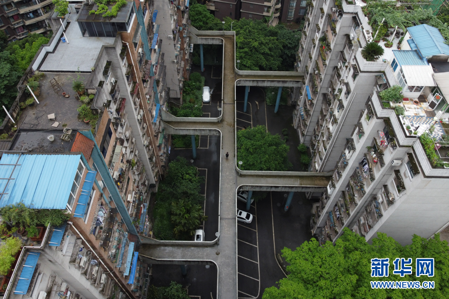 繼輕軌穿樓、高鐵穿樓、“貓頭鷹”立交橋之后,重慶又一建筑走紅網(wǎng)絡。近日,有網(wǎng)友發(fā)現(xiàn),重慶渝中區(qū)一個老小區(qū)幾棟居民樓的4樓中間,建起了連接各個單元的空中走廊,居民出入猶如空中漫步。新華網(wǎng) 耿駿宇 攝