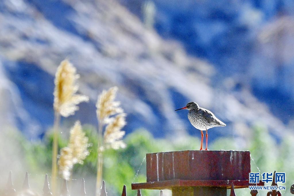 初夏,紅腳鷸在位于西藏拉薩的拉魯濕地國(guó)家級(jí)自然保護(hù)區(qū)內(nèi)起舞覓食。