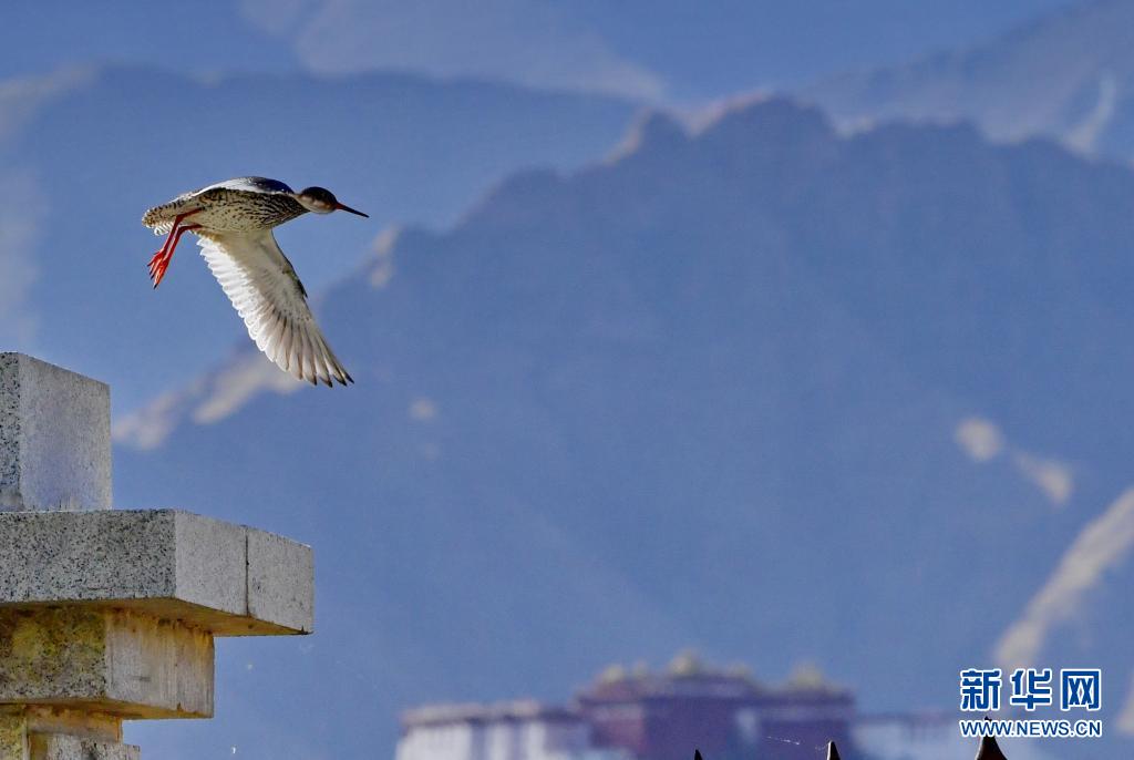 初夏,紅腳鷸在位于西藏拉薩的拉魯濕地國家級自然保護區(qū)內(nèi)起舞覓食。