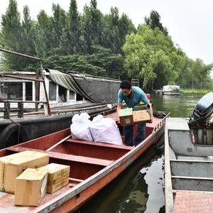 南陽鎮(zhèn)留守老人多,外出的子女會為父母寄來各樣的網(wǎng)購物品。作為土生土長的南陽鎮(zhèn)人,王少朋知道,郵船雖小,卻承載著遠(yuǎn)方子女對家人的親情;郵路不長,卻投遞著一份溫情與守望……