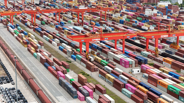 5月7日无人机拍摄的上海铁路芦潮港集装箱中心站。