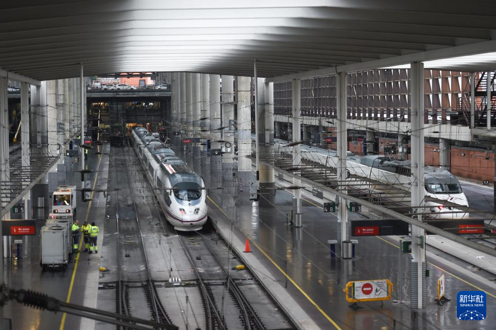这是1月21日在西班牙马德里阿托查车站拍摄的高铁列车。新华社发(古斯塔沃·巴连特摄)