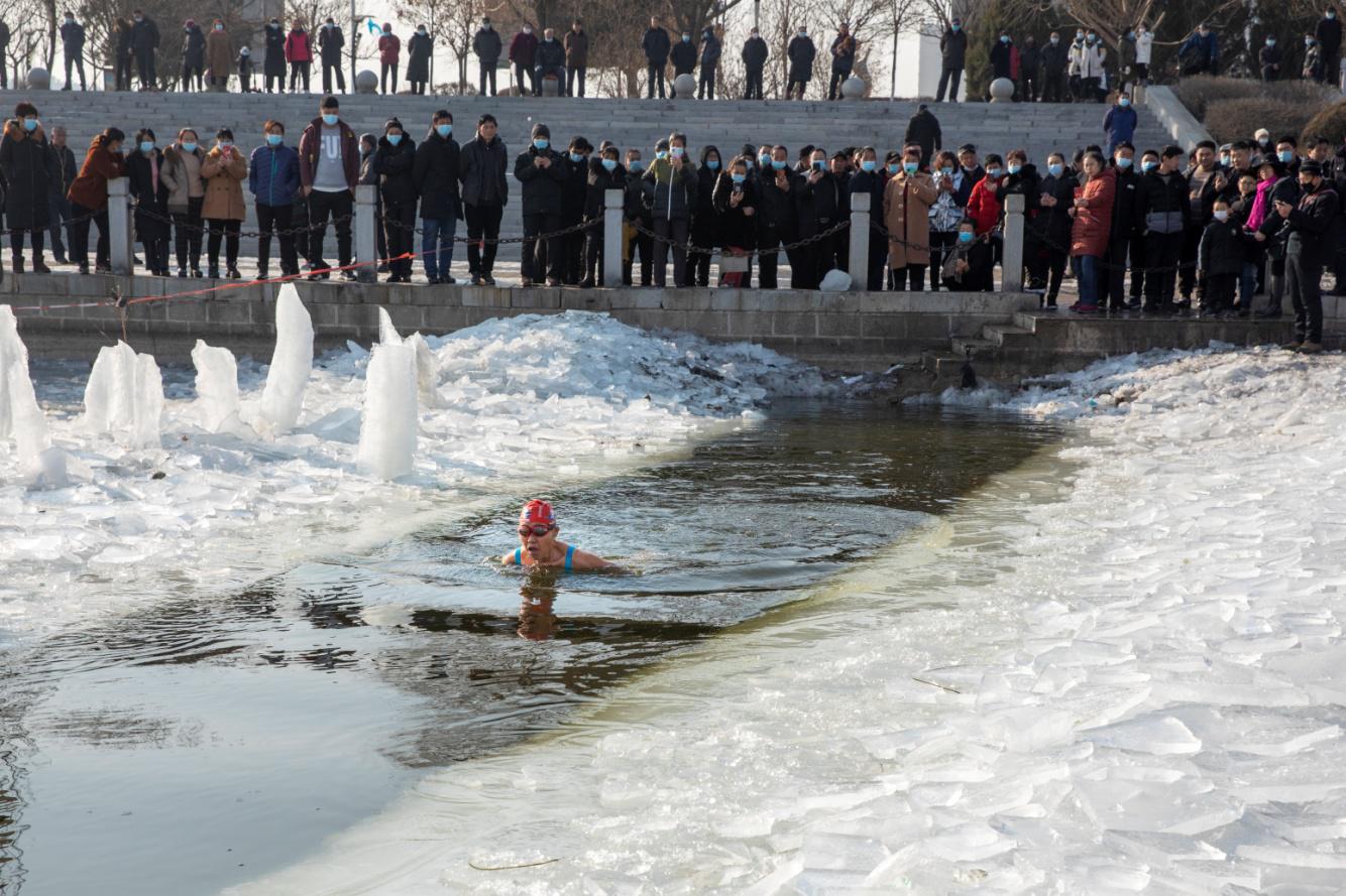 吃完再說玩,北國凌源,這里可從來不貓冬,他們把冰天雪地當(dāng)成了激情飛揚的秀場。大凌河的冰面愣生生被鑿出一條“長河”,成為冬泳愛好者的基地。