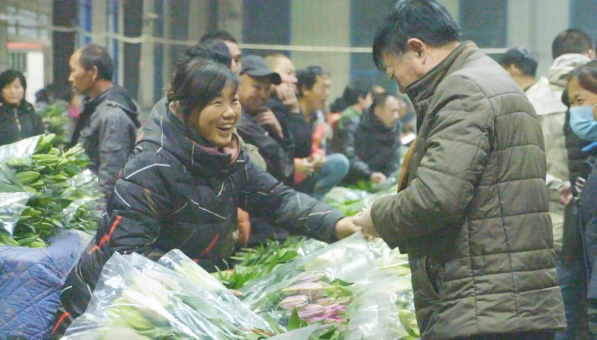 凌源人喜吃愛玩,但他們知道所有的幸福都是奮斗出來的。凌晨四點多鐘,凌源花卉交易市早已花來球往,今年的花價較往年同期要高一些。據(jù)說花市全年無休,年三十都要交易。