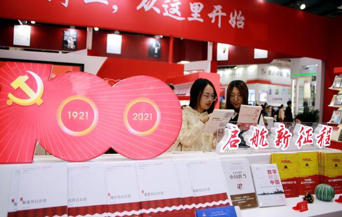在會場最醒目位置特設(shè)慶祝建黨100周年主題圖書展區(qū)