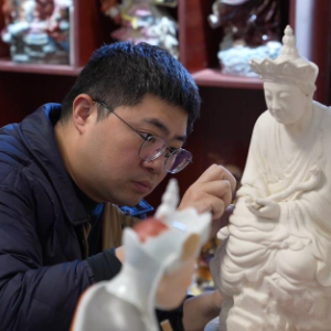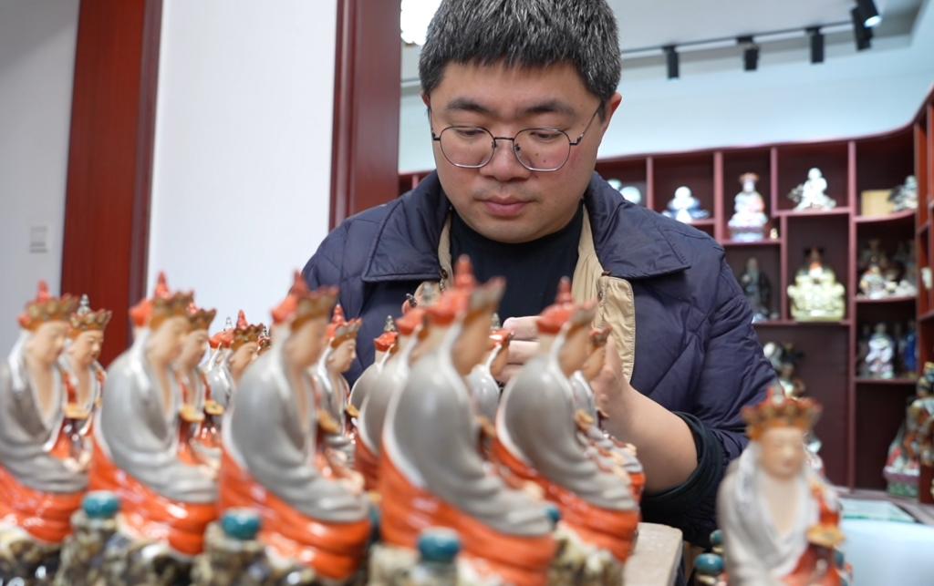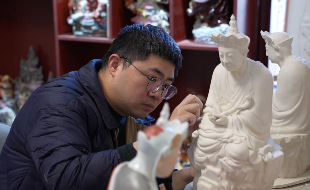 今年36岁的曾锐是“瓷雕曾”陶瓷世家第四代传承人,他在传统技艺的基础上,守正创新。