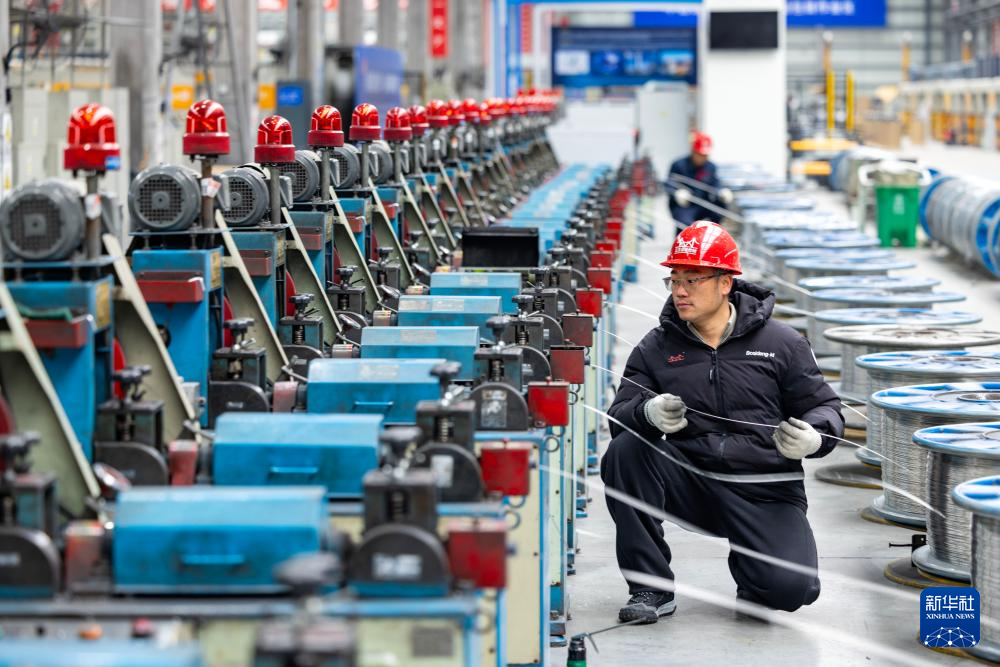 2月24日,在四川省华蓥市华蓥山经开区拓自达电线(四川)有限公司智能车间,工人利用机械设备生产订单产品(无人机照片)。