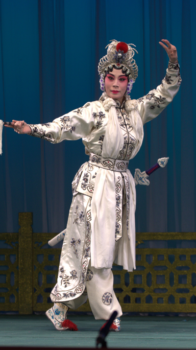 刀馬旦擅長武藝,多是扮演穿蟒扎靠,戴翎子的女將,兼重唱、念和做工。其所塑造的角色既要能唱又要善打,不僅要有文戲的功底,還要有武戲的基礎。刀馬旦經常在精彩的武打表演同時穿插大段唱詞,在劇烈的形體運動后保持昆曲特有的柔美唱腔,難度可想而知。