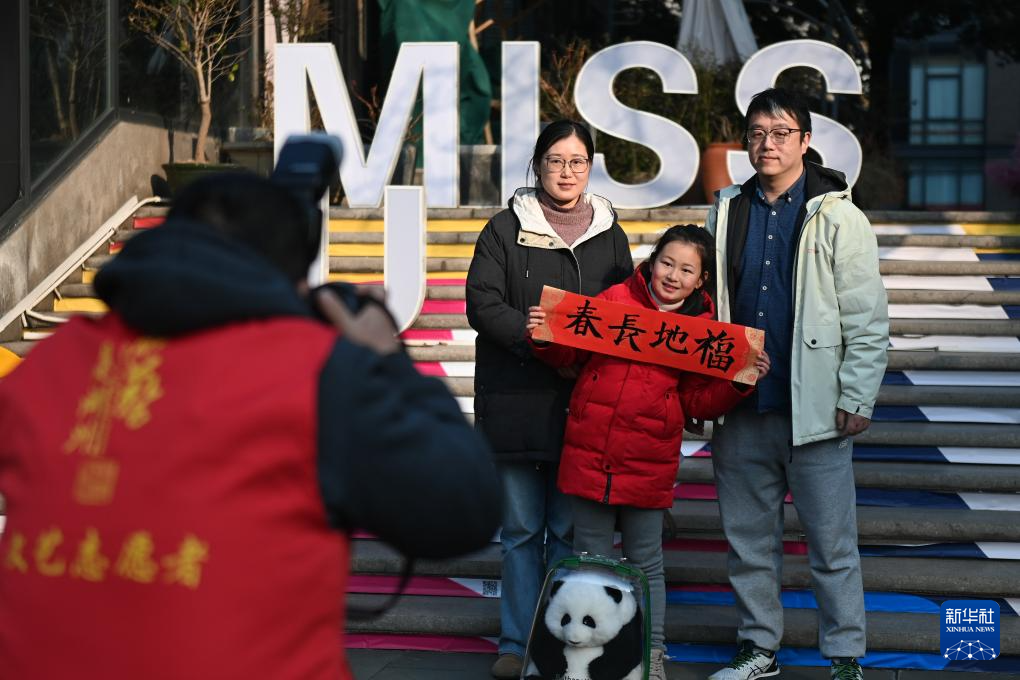 1月28日,志愿者在吴兴区爱山街道爱山广场为市民免费拍摄全家福,随后打印赠送照片。
