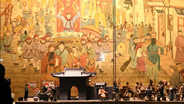 8月18日,在柳州市融水苗族自治县汪洞乡,村民们在改造后的河道上进行“刘三姐河上实景演出”。