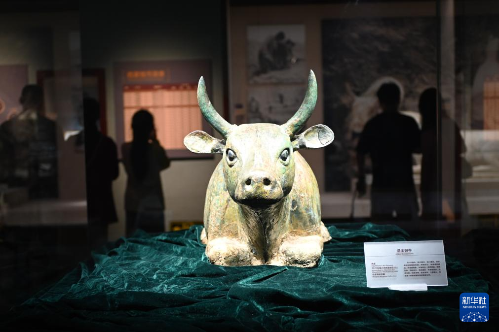这是9月1日在宁夏博物馆拍摄的鎏金铜牛。