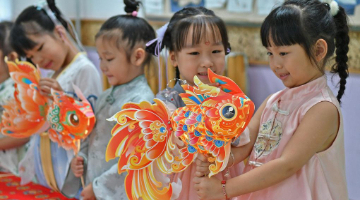 当日,北京大钟寺古钟博物馆举办中秋主题活动,邀请游客做月饼,染漆扇,赏古钟。