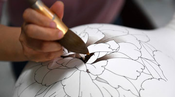 9月27日,醴陵釉下五彩瓷烧制技艺省级非遗代表性传承人申彬在制作陶瓷彩绘。