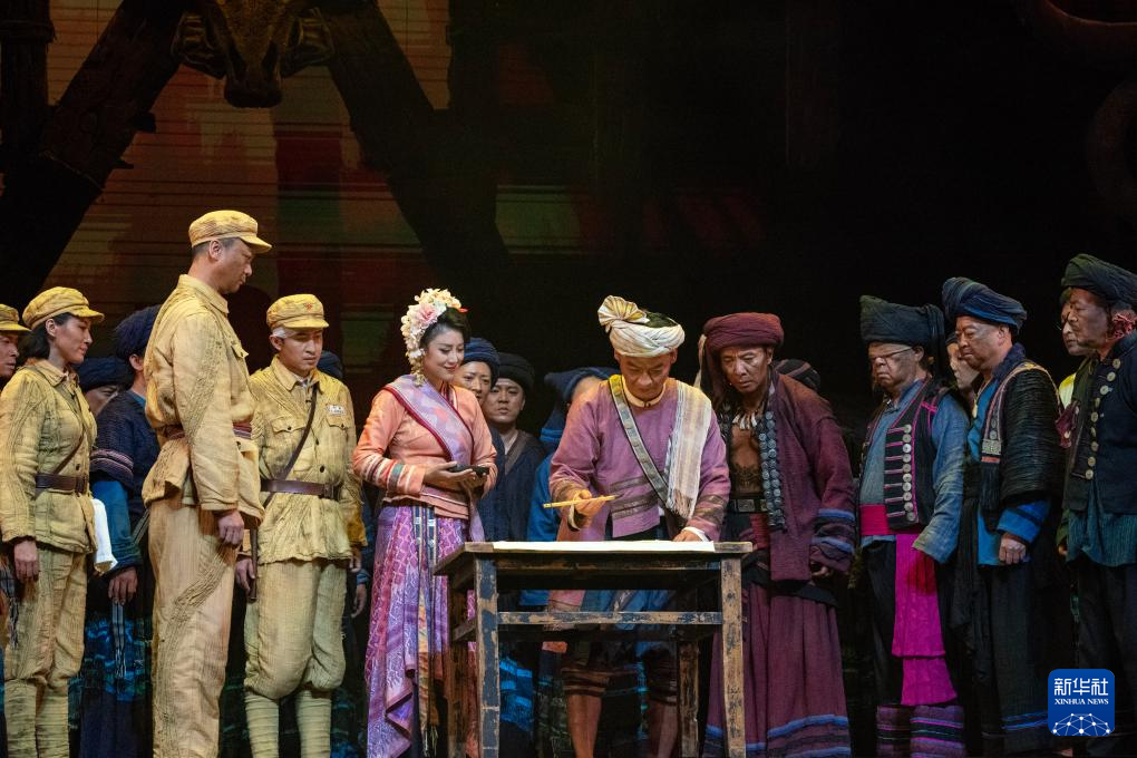 10月13日晚,由云南省话剧院制作出品的民族史诗话剧《澜沧水长》在云南省大剧院上演。该剧生动展现了新中国成立之初云南各民族代表共同立下普洱民族团结誓词碑的过程。
