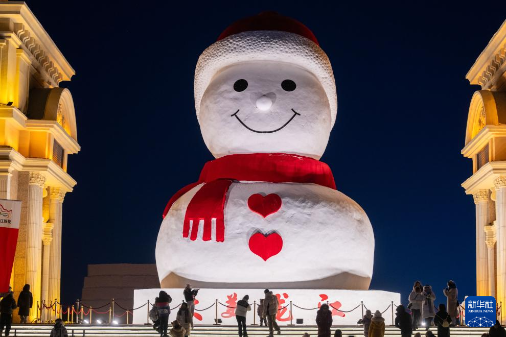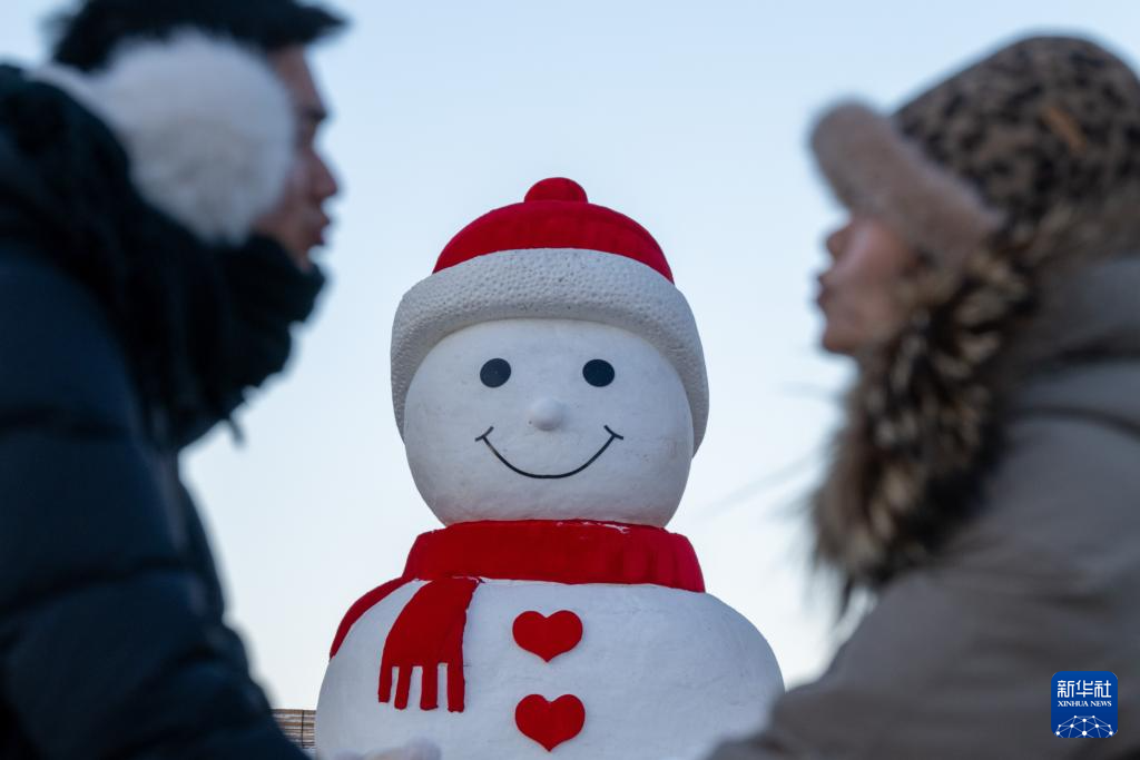 当日,哈尔滨“网红”大雪人“回归”松花江畔。