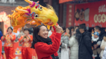 1月20日,在白俄罗斯首都明斯克,来自中国的学生在中白学生春节联欢晚会上表演舞狮。
