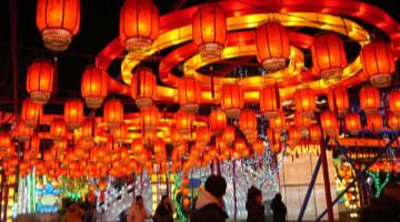 当日,第二届津彩大灯会在天津市水西公园举行亮灯仪式。本届灯会设置了山海秘境、星宿千灯等八大主题共32组精彩花灯。
