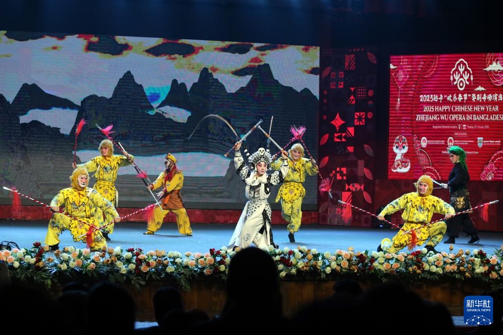 1月21日,演员在孟加拉国首都达卡举行的2025“欢乐春节”婺剧专场演出上表演。