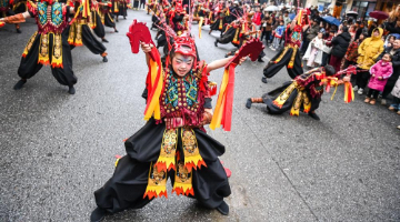 这是2月12日在摩洛哥拉巴特拍摄的提着蛇形手提灯笼的孩子们。