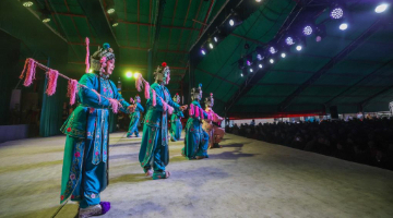 2月12日,在摩洛哥拉巴特,一名女子与蛇形手提灯笼留影。
