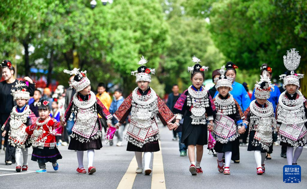 当日,在贵州省黔东南苗族侗族自治州台江县,万余名苗族群众身着盛装,庆祝一年一度的姊妹节。“苗族姊妹节”是贵州台江县苗族同胞的传统节日,2006年被列入第一批国家级非物质文化遗产名录。
