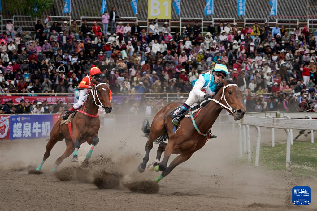 这是4月13日拍摄的三月街民族节赛马大会现场。