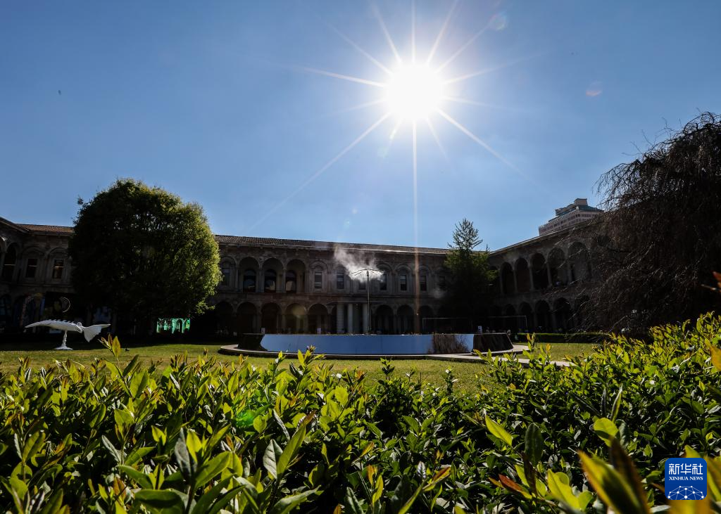 4月11日,在意大利米兰国立大学,人们参观中国设计师吴滨的设计作品《杳然庭》。