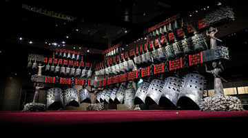 4月19日晚,演员在天津津湾广场亲水平台为市民游客演出。