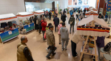 5月16日,老挝民众在首都万象举行的“茶和天下·雅集”暨广西文化旅游推介会上参加壮锦非遗体验活动。