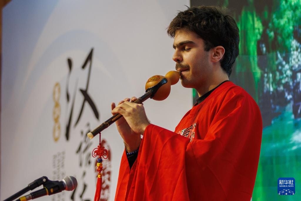 5月18日,在巴西里约热内卢,来自巴西南里奥格兰德州联邦大学孔子学院的罗德里戈·古特雷斯夺得大学生组比赛冠军。