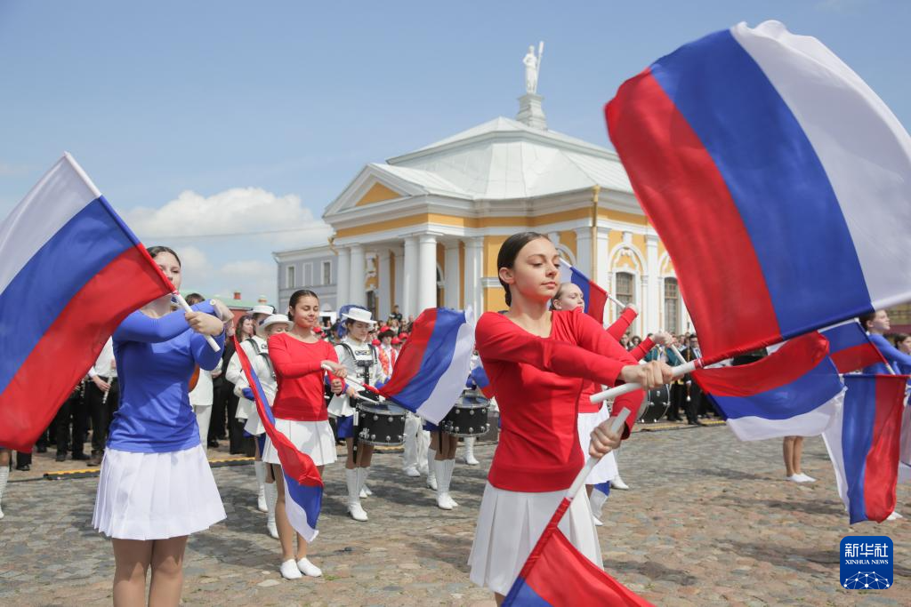 5月27日,儿童和青少年乐手等参加在俄罗斯圣彼得堡彼得保罗要塞举行的管乐队演出。