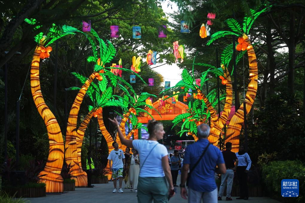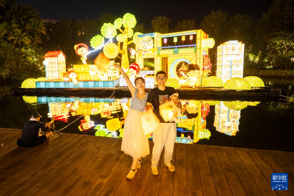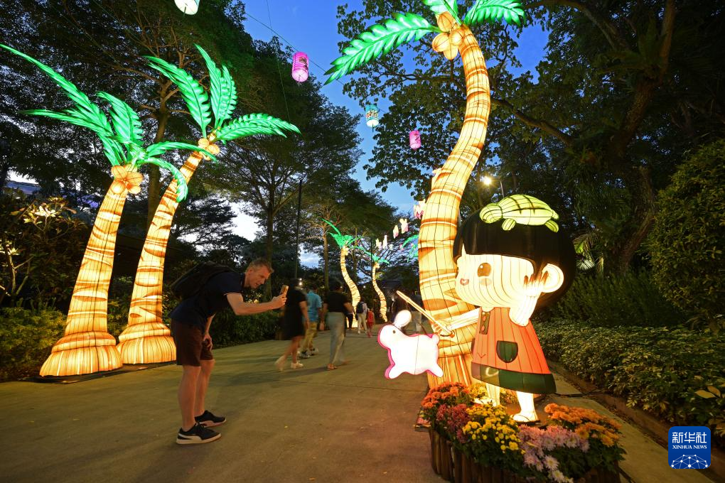 9月22日,游客在新加坡滨海湾花园欣赏中秋节灯饰。
