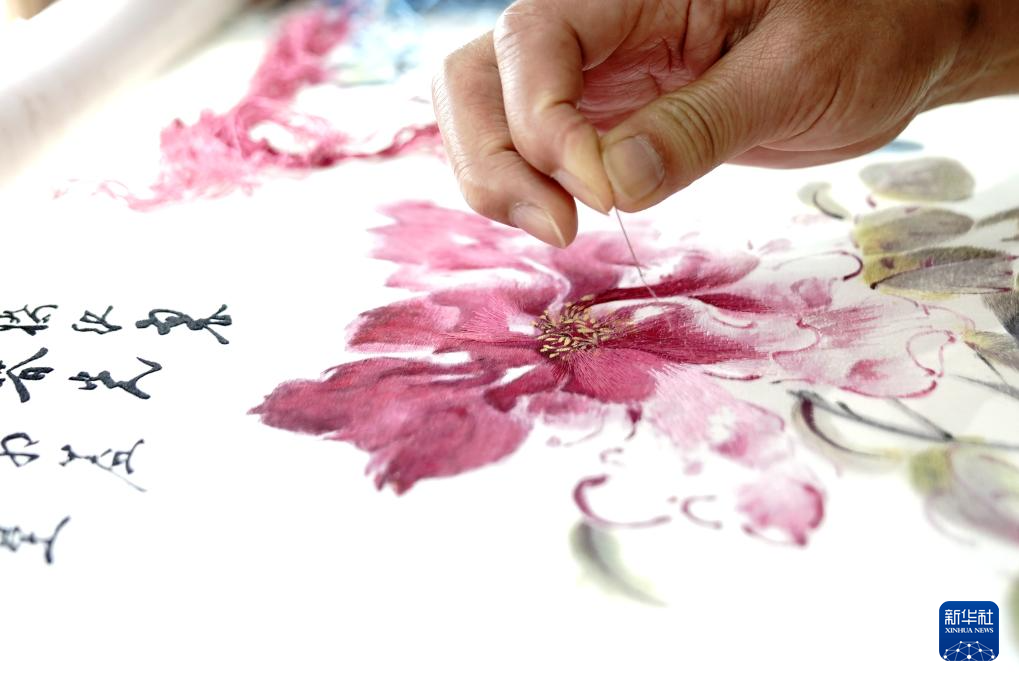 11月7日,工作人员在第八届进博会河南展区演示开封汴绣。