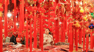 2月10日,罗布斯达在西藏唐卡画院的展厅里查看用矿物制作的颜料。