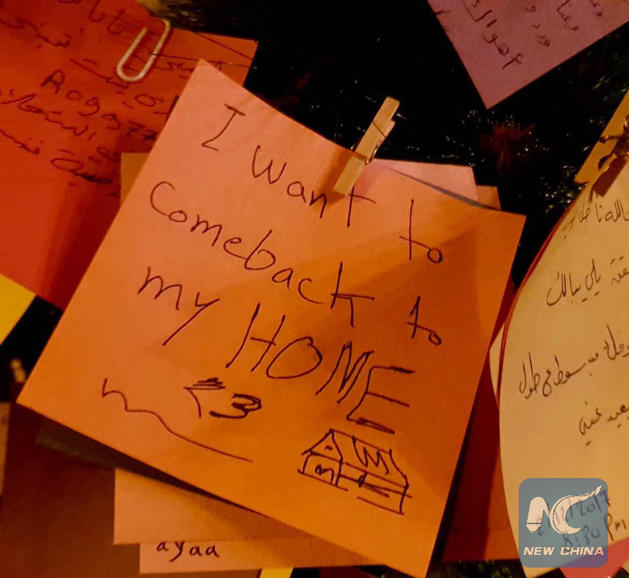 DAMASCUS, Dec. 17 (Xinhua) -- Instead of the baubles, tinsel and toppers, a Christmas tree in the old city of Damascus is festooned with the wishes of people for 2018.