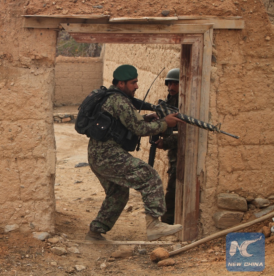 Afghan army soldiers take part in a military operation against Islamic State in Khogyani district of Nangarhar province, Afghanistan, Dec. 14, 2017. (Xinhua/Rahman Safi)