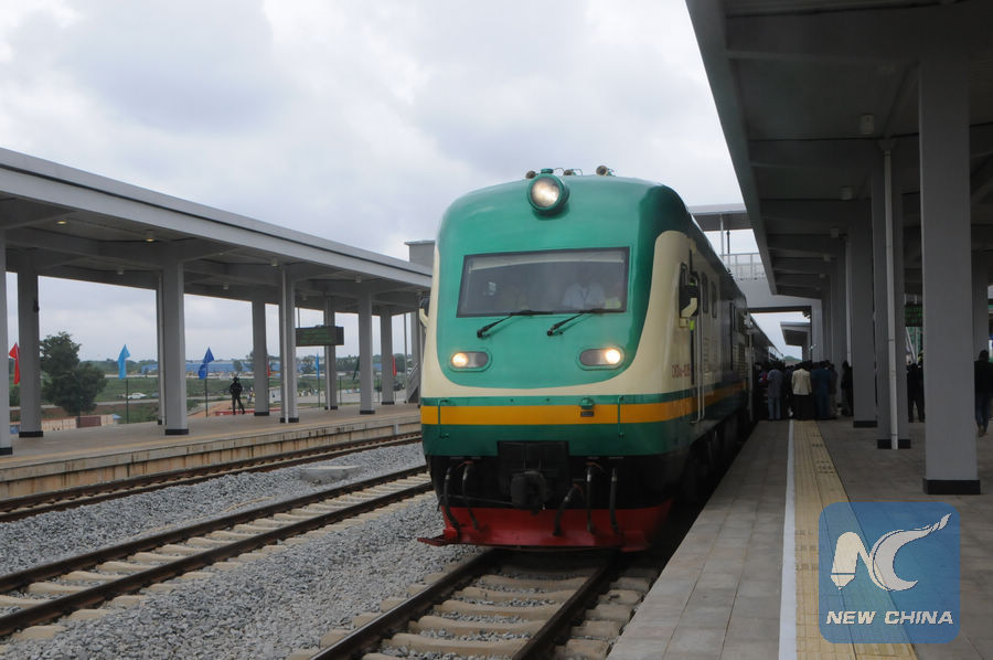 A train is pictured at a train station in suburban Abuja, on July 26, 2016. The railway, built by China Civil Engineering Construction Corporation, covers a distance of 186.5 km and links the capital city Abuja and the northwestern state of Kaduna. It has nine stations and a designed speed of 150 km per hour. Built in 2011, the railway became operational in July 2016. (Xinhua/Yang Hongjie)