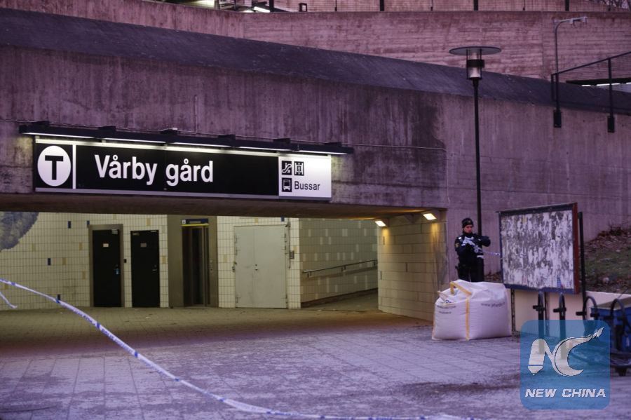 The subway station of Varby Gard in the municipality of Huddinge, 11 kilometers south of Stockholm, Sweden, was closed after an explosion killed one man and wounded a woman on Sunday, on January 7, 2018. (Xinhua/Wei Xuechao)