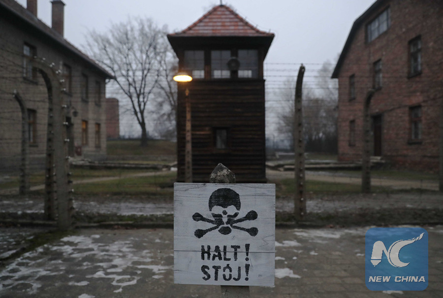 A sign reading "Stop!" in German and Polish is seen at the former Nazi German concentration and extermination camp Auschwitz, during the ceremonies marking the 73rd anniversary of the liberation of the camp and International Holocaust Victims Remembrance Day, in Oswiecim, Poland, Jan. 27, 2018. (Reuters photo)