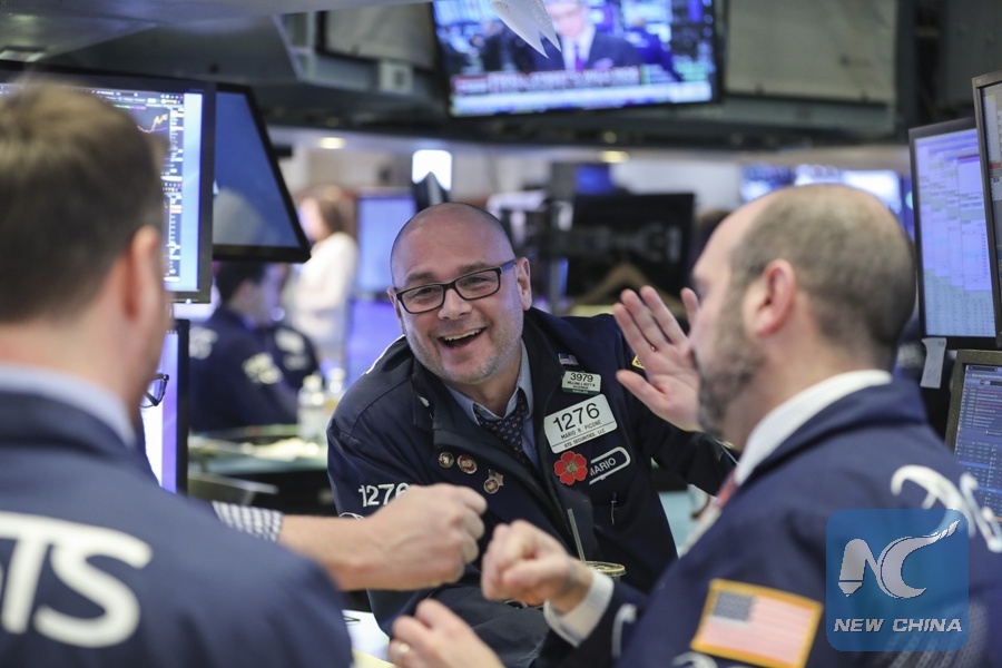 Traders work at the New York Stock Exchange in New York, the United States, Feb. 6, 2018. (Xinhua/Wang Ying)