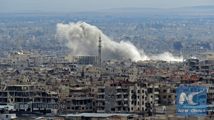 DAMASCUS, Feb. 27 (Xinhua) -- The first day of the Russian-proposed humanitarian pause ended with no civilians leaving the rebel-held Eastern Ghouta area east of the capital Damascus.