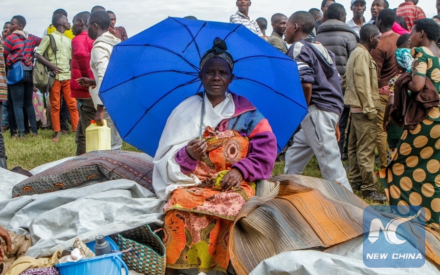 A refugee from the Democratic Republic of Congo sits with her belongings near the United Nations High Commissioner for Refugees (UNHCR) offices in Kiziba refugee camp in Karongi District, Rwanda Feb. 21, 2018. (Xinhua/REUTERS)