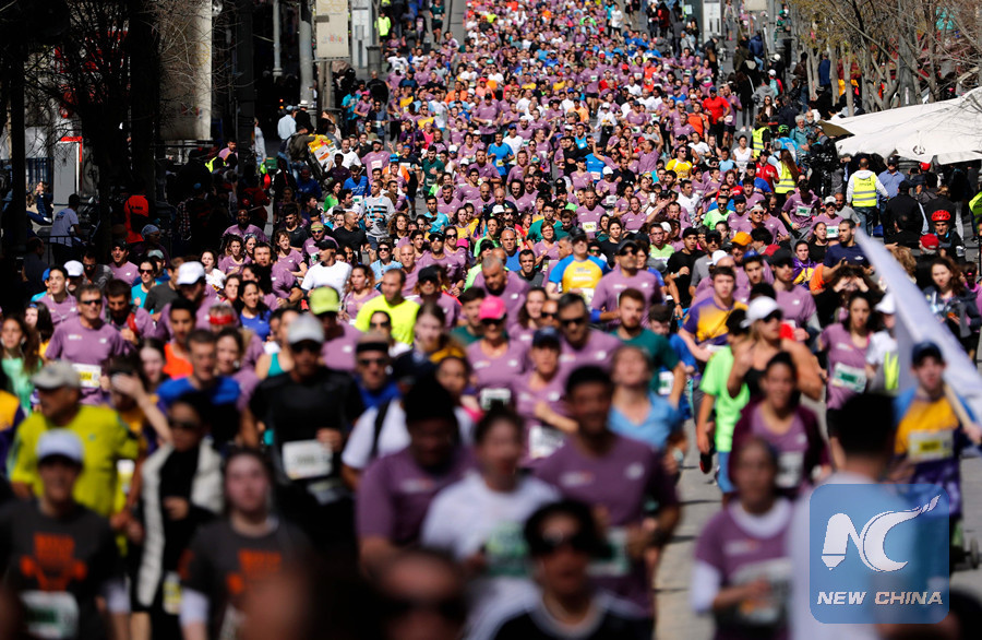 JERUSALEM, March 9 (Xinhua) -- More than 35,000 people, including some 4,000 from outside Israel, ran in the eighth annual Jerusalem Marathon on Friday, the largest number yet in the annual race.