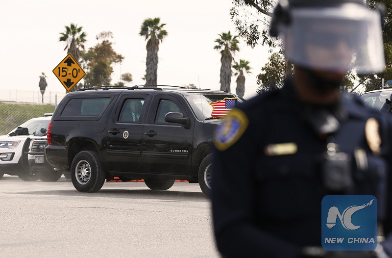 SAN DIEGO/MEXICO CITY, March 15 (Xinhua) -- Chanting "Build bridges not walls," hundreds of protesters in downtown San Diego, California, greeted Donald Trump's maiden trip as U.S. president to the "Golden State" bordering Mexico.